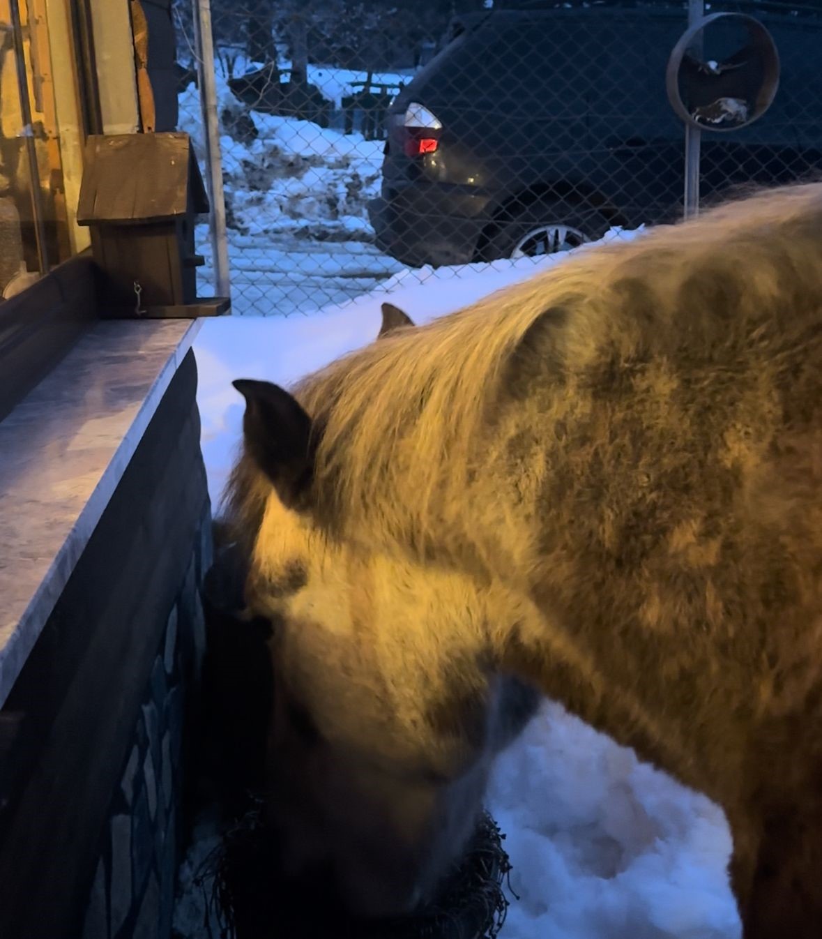 Atların aç kaldığını fark eden Gökhan Bilen, o anları cep telefonu kamerasıyla kaydetti. Görüntülerde, Bilen’in kapısına kadar gelen atlara, “Hoş geldiniz ya. Ben sizi geçen gün doyurmadım mı? Babacım korkma” diye seslendi.