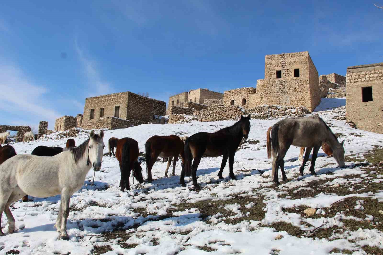 Şırnak’ın İdil ilçesine bağlı Gabar Dağı eteklerinde bulunan Mağara köyündeki tarihi varlıklarının yanı sıra sunduğu doğa güzellikleri, yılkı atlarına da ev sahipliği yapıyor. Gabar Dağında yaşayan yılkı atları, bölgede karın beyaza bürüdüğü alanda …