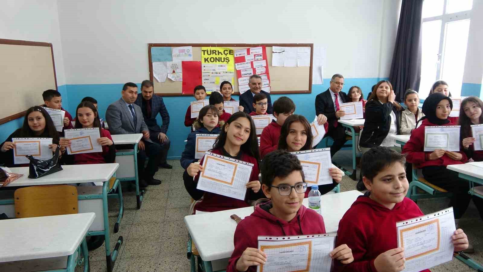 Yozgat Fatma Temel Turhan Ortaokulu’nda düzenlenen karne programına katılan Yozgat Valisi Mehmet Ali Özkan, öğrencilere karnelerini vererek başarılar diledi. Vali Özkan, tatilde öğrencilere neler yapacağını sordu. Tatilde ders çalışacağını, kitap okuyacağını, karda oynayacağını söyleyen çocuklar oldu.