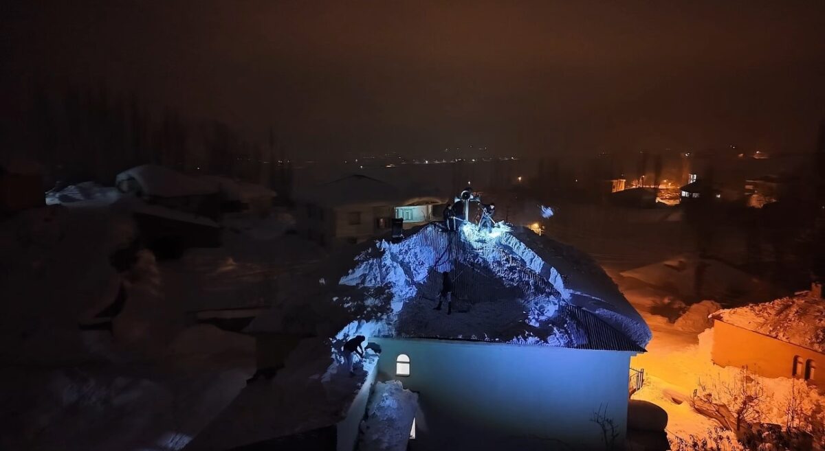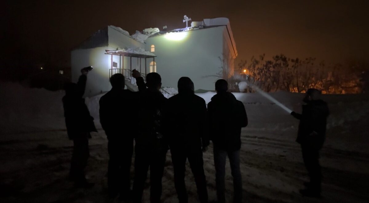Hakkari’nin Yüksekova ilçesinde son yılların en yoğun kar yağışı etkili olurken, Güllüce köyündeki caminin çatısı biriken karın ağırlığıyla çöktü. İmamın anonsuyla bir araya gelen köy sakinleri, cami çatısında kar temizleme çalışması başlattı.