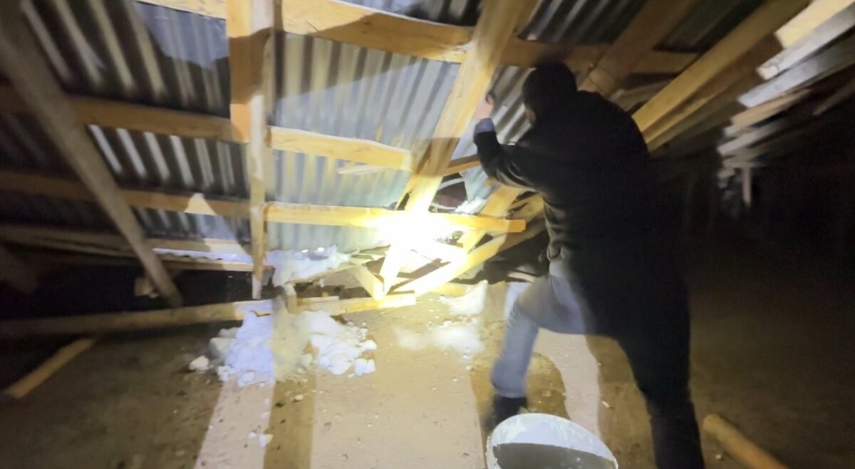 Hakkari’nin Yüksekova ilçesinde son yılların en yoğun kar yağışı etkili olurken, Güllüce köyündeki caminin çatısı biriken karın ağırlığıyla çöktü. İmamın anonsuyla bir araya gelen köy sakinleri, cami çatısında kar temizleme çalışması başlattı …